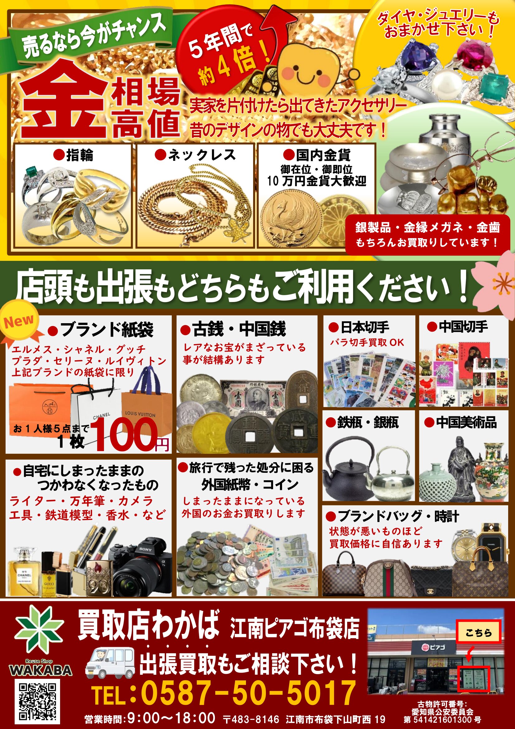 →エルメス・シャネル・グッチ・プラダ・セリーヌ・ルイヴィトンに限り1枚100円でお買取り!(※お1人様5点まで)